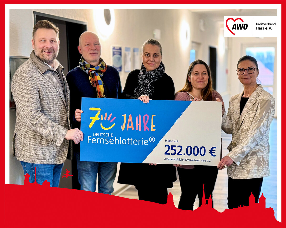 Der gemeinnützige AWO Kreisverband Harz e.V. kann sich über eine zweckgebundene Förderung der DEUTSCHEN FERNSEHLOTTERIE in Höhe von 252.000 Euro freuen. Die Zuwendung von Deutschlands traditionsreichster Soziallotterie kommt der anteiligen Deckung von Personal- und Honorarkosten sowie projektbezogenen Sachkosten bei der Realisierung des Vereinsprojektes: „WegBegleiter im Sozialdschungel“ für den Landkreis Harz und Salzlandkreis zugute. Damit ist die Projektfinanzierung bis Ende März des Jahres 2029 sichergestellt. Die Gesamtkosten dieses neuen Sozialprojektes belaufen sich auf 315.000 Euro.