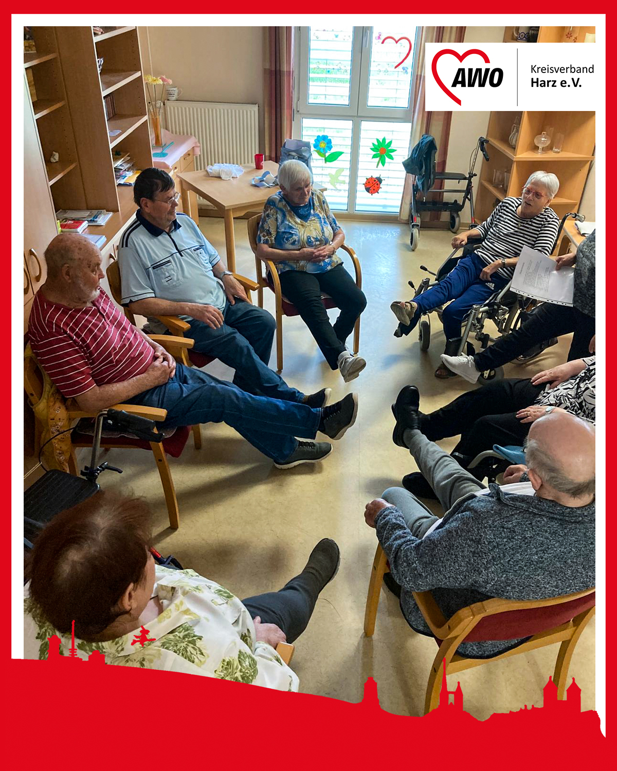 Bewegung im Alter ist unglaublich wichtig, und unsere Gäste der Tagespflege sind richtig aktiv beim „Sportprogramm“ dabei. Zuerst werden die Füße in Schwung gebracht, dann die Hände – kein Körperteil bleibt still. Alles wird fleißig durchbewegt, und es macht allen großen Spaß. Es ist schön zu sehen, wie viel Freude und Energie bei dieser gemeinsamen Bewegung entstehen.