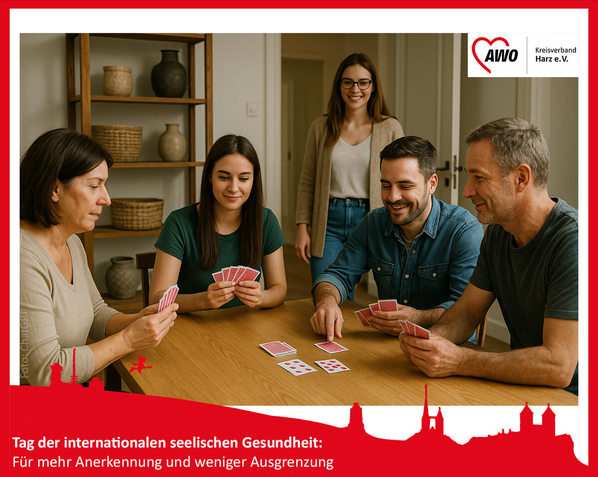 Der AWO Kreisverband Harz e. V. sieht es als gesellschaftliche Aufgabe, über seelische Gesundheit aufzuklären und Barrieren im Denken und Handeln abzubauen. Denn: Nur durch Akzeptanz, Verständnis und solidarisches Miteinander kann ein inklusives Leben für alle Menschen – mit und ohne seelische Beeinträchtigung – gelingen.